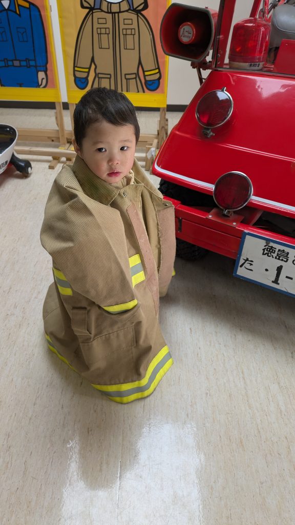 投稿日: 2026年2月4日2026年2月4日🚒消防署見学に行って来ました!🚒 こんにちは♪ヨコミネ式保育園の中野先生です(^^)先日、徳島東消防署に見学に行かせていただきました!冷たい風が吹いて寒い日子どもたち、引率の先生もモコモコ厚着して保育園から消防署に向かいます消防署に着くと消防士の方々が待ってくださっていました最初に体験したのははしご車🚒車からはしごが出てくる様子に大興奮!今回は先生が乗って高い所まで上がりますなんと、今回体験したはしご車は54mまで上がる事ができ、晴れた日には岡山県が見れるそうです(゚д゚)!そのほかには【しょうちゃん号】に乗って記念撮影をしたり、実際に消防車に乗ってみたり、放水や早着替えの様子を見たりして消防車や消防士のお仕事について学ぶ充実した時間となりました^_^ この度は、お忙しい中見学させていただきありがとうございました!